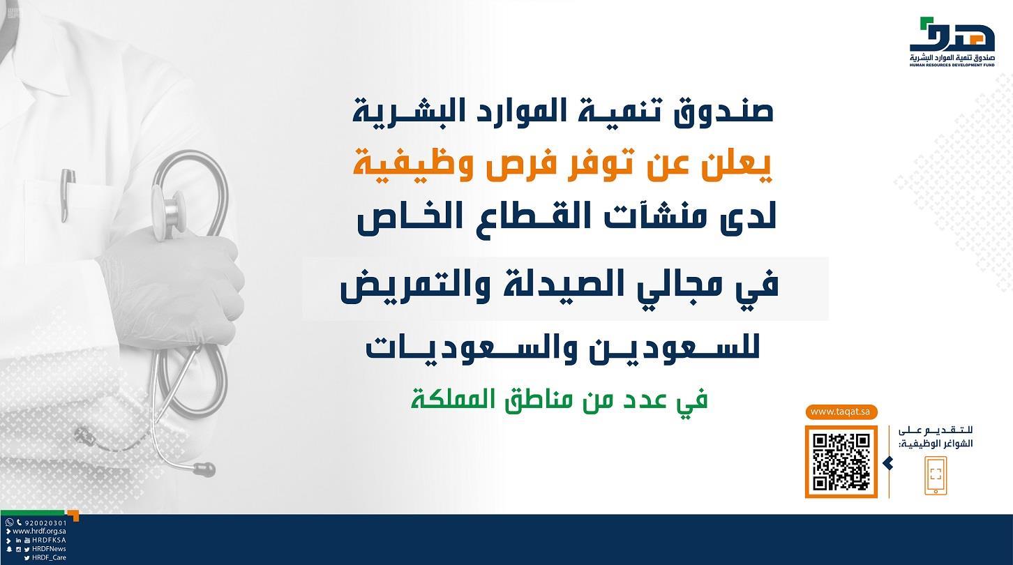 أعلن صندوق تنمية الموارد البشرية “هدف” عن توفر فرص وظيفية للباحثين والباحثات عن عمل لدى منشآت القطاع الخاص في عدد من مناطق المملكة في مجالي الصيدلة والتمريض.