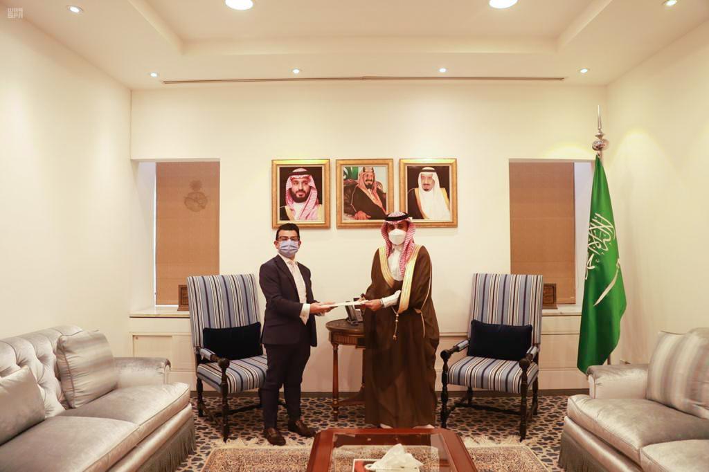 وتسلم ابن نحيت خلال الاستقبال، نسخة من أوراق اعتماده سفيراً لبلاده لدى المملكة، تمهيداً لتقديمها لخادم الحرمين الشريفين الملك سلمان بن عبدالعزيز آل سعود – حفظه الله -، ونقل تمنيات سمو وزير الخارجية له بالتوفيق في توطيد وتعزيز علاقات التعاون والدفع بها لآفاق أرحب.