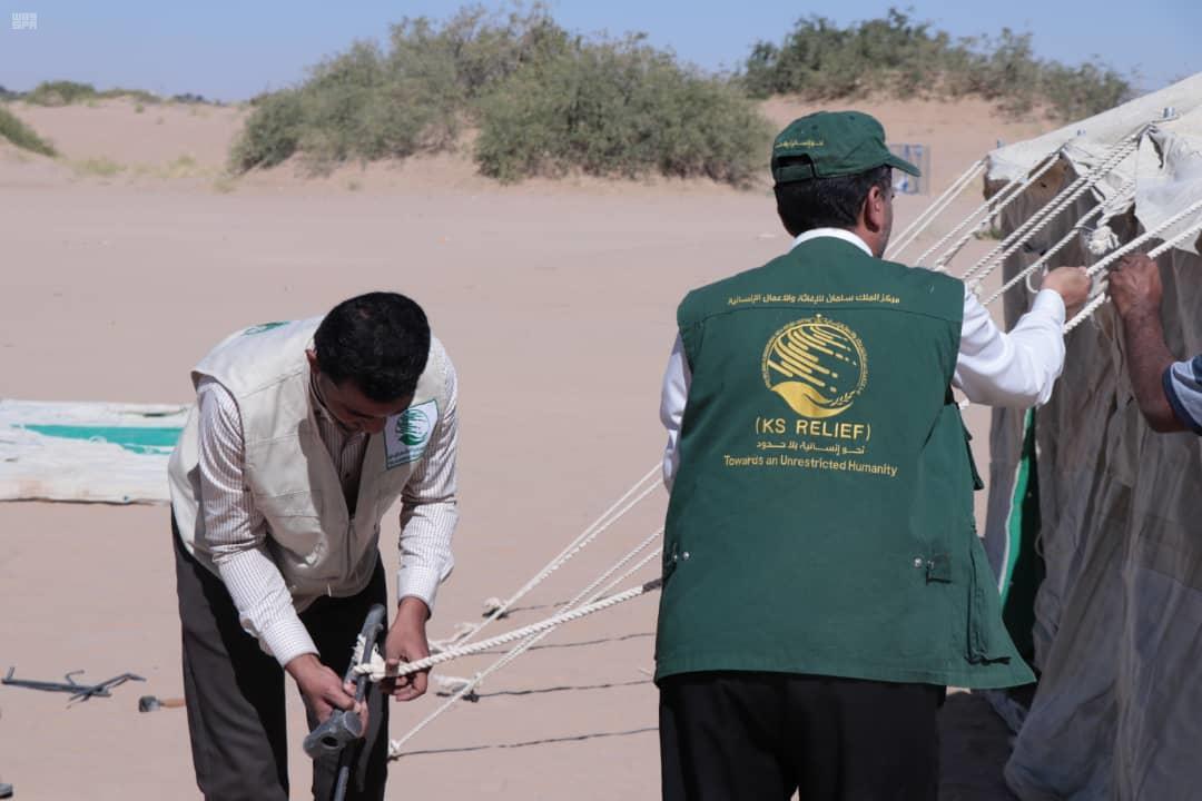وزع مركز الملك سلمان للإغاثة والأعمال الإنسانية أمس مواد إيوائية شملت 50 خيمة و 100 بطانية للنازحين في مديرية الوادي بمحافظة مأرب، استفاد منها 100 نازح.